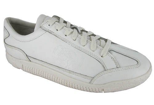 The futuristic Diesel Keep sneakers are sure to bring on some admiring glances. Leather upper in a casual sneaker style with a round toe. Stitching and overlay accents. Diesel logo overlays create a cool, contemporary look. Exposed leather tongue with hidden elastic gore and side hook-and-loop closure creates and easy, comfortable fit. Textile lining and cushioning insole. Durable rubber traction outsole.